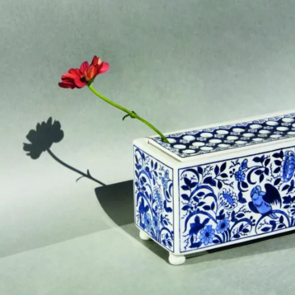 クラシックなデルフトブルーとミニマルな直方体フォルムが印象的な一品